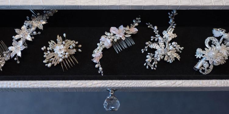 A bride is never complete without her personalized touches of sparkle. Jewelry and accessories are a complete reflection of a bride's personality. Therefore, each month Raffiné Bridal receives new jewelry and accessories that bring variety and uniqueness to the selections offered. These items are ready to purchase the same day, so if it’s a last minute add-on, no problem. When timing allows, special orders can also be taken.