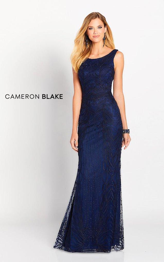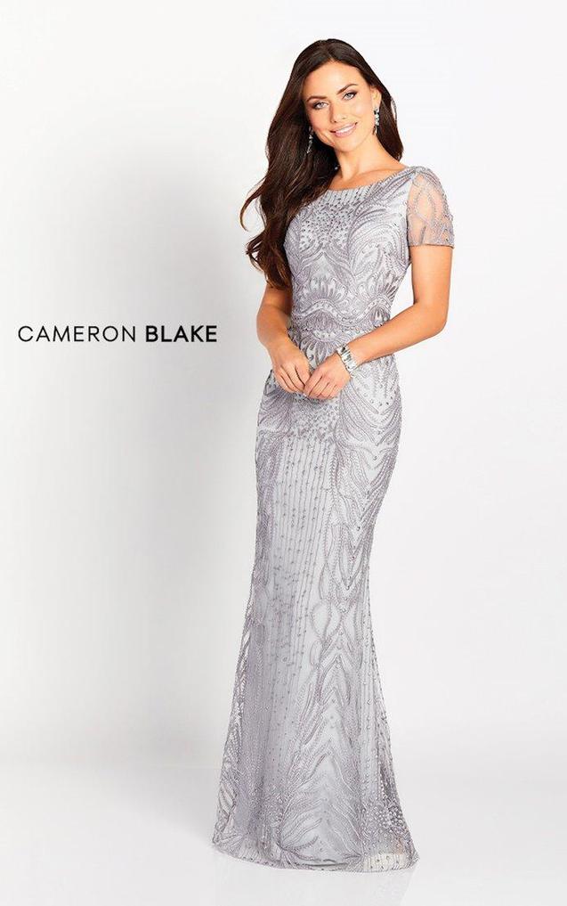 This sophisticated and gorgeously detailed sleeveless allover lace sheath features a Sabrina neckline, a natural waist, a V-back, and a sweep train. Instantly change up your look. (Separate illusion short sleeves and shawl included)