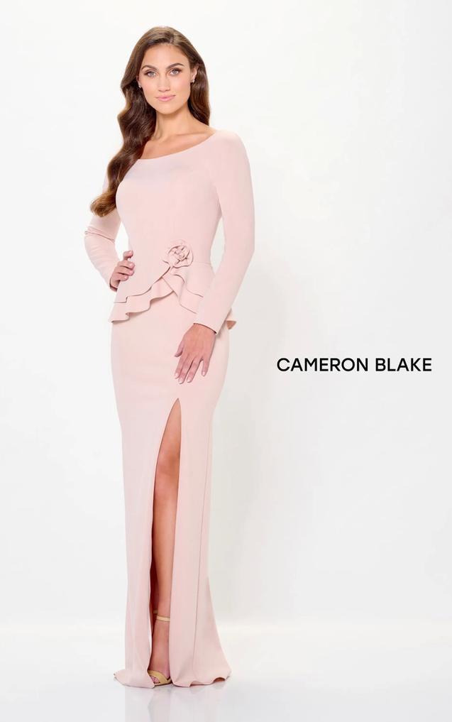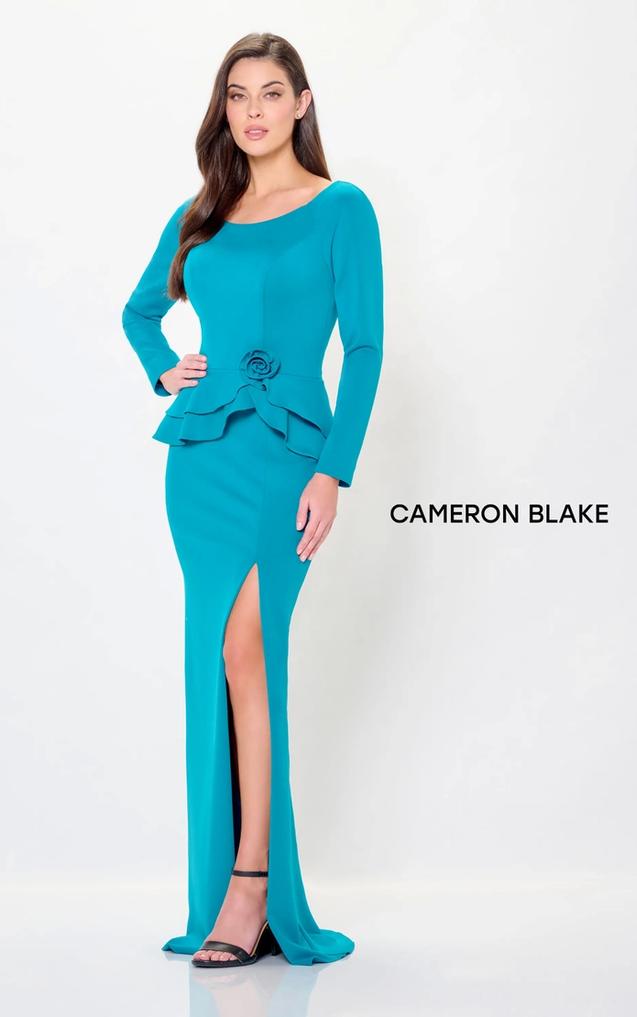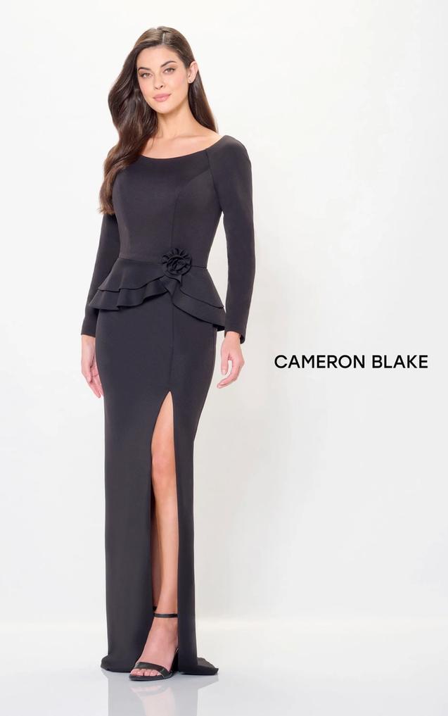 Make an elegant impression in this sophisticated sheath dress. Its stylish peplum waist, accentuated with three-dimensional floral detailing, gracefully highlights your natural curves and flatters the waistline, while the thigh split adds a touch of refined drama.