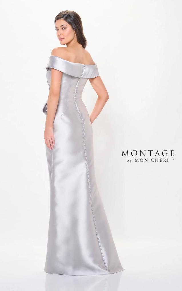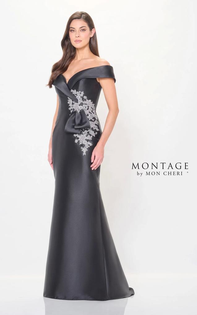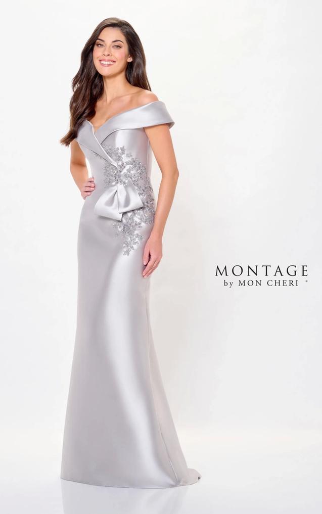 Beautifully crafted from sumptuous Mikado fabric, this elegant style hugs and enhances your curves to create a stunning silhouette. The off-the-shoulder, sleeveless design gracefully highlights the collarbone, while sparkling beading and stone accents accentuate the waist. (Removable straps and matching shawl included)